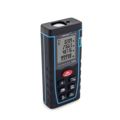 Портативный прибор для измерения расстояний от 0.2 до 100 метров. Прибор предназначен для профессионального использования при выполнении строительных работ и использования в быту. Точность измерения расстояния не хуже +/- 2 мм. Кроме измерения расстояния прибор способен вычислять площадь, объем, вычитать и суммировать полученные результаты. Для вывода результатов прибор оснащен ЖК дисплеем с подсветкой. Корпус прибора защищен от атмосферных воздействий по классу защиты IP 54 Для питания прибора используются два элемента формата АА (нет в комплекте).