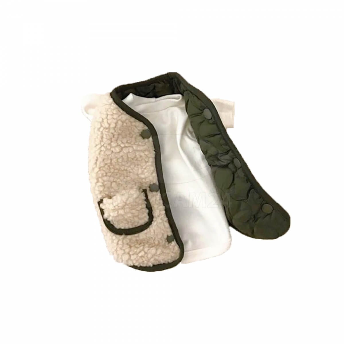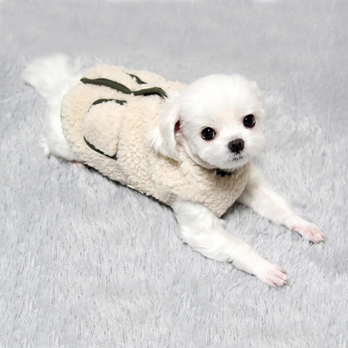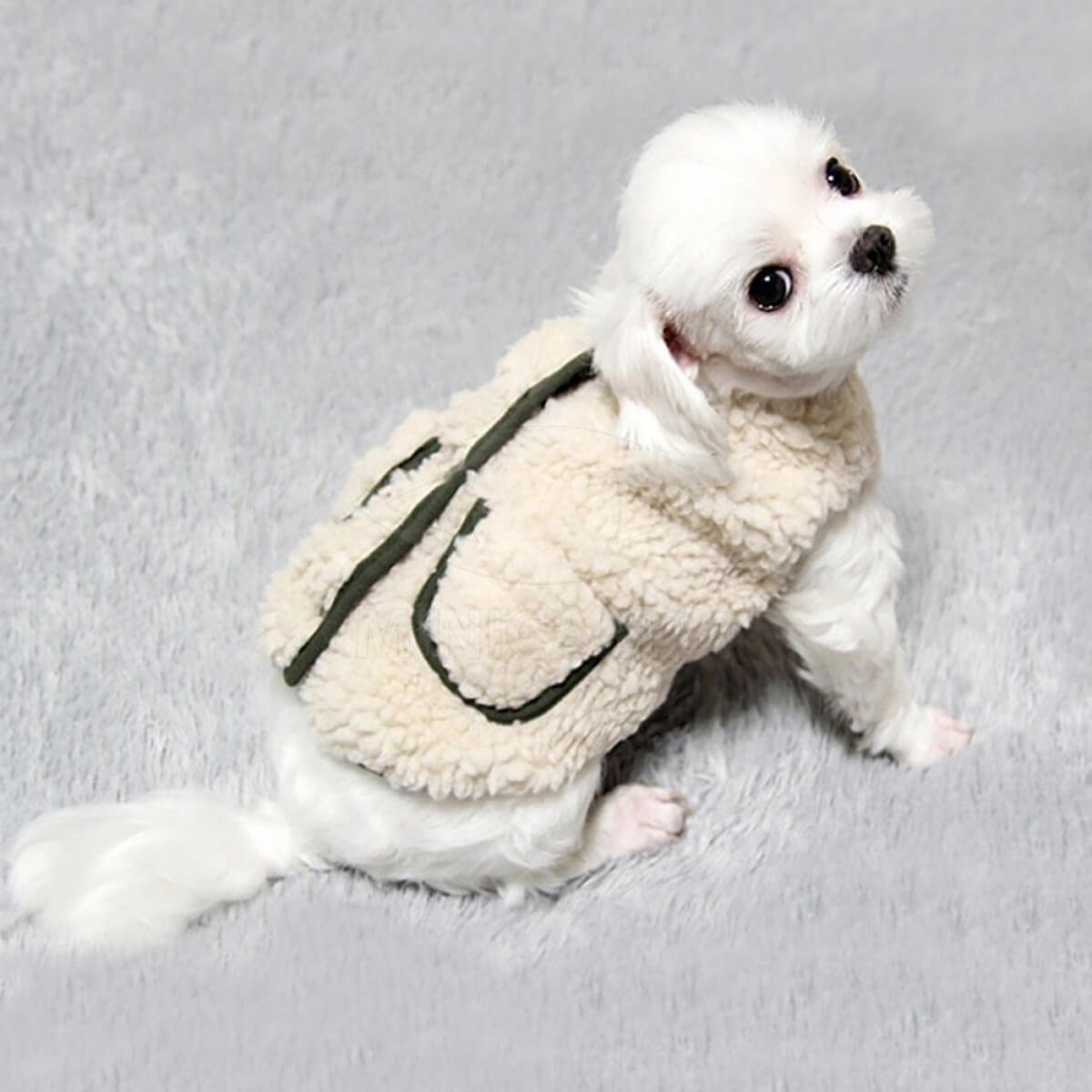 Зимняя-осенняя жилетка для собак Fluffy, S изготовлена из мягкого плюша, стилизована под овечью шкуру. Внутри предусмотрена подкладка из хлопка. Он хорошо сохраняет тепло и отводит влагу, благодаря чему собака будет чувствовать себя комфортно на протяжении всей прогулки. Жилетка застегивается на пуговицы на животе, в верхней части есть небольшие карманы. Костюм не сковывает движений животного, не мешает лапам при играх и беге. Подойдет для прогулок в осенне-зимний период.